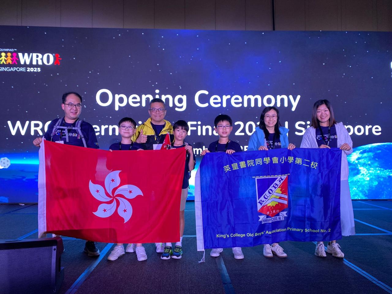 比賽日期: 2025年11月26-28日 主辦機構: 世界機械人奧林匹克協會 好消息!英皇書院同學會小學第二校的「KCOBAPS2」隊伍代表香港參加WRO 2025在新加坡舉行的「國際機械人任務」世界賽的總決賽獲得了驕人的成績! 「KCOBAPS2」隊伍由6A錢思行同學、6A鄺思朗同學和6A楊日晉同學組成,他們在比賽中展現出運算思維才華,技能和團隊合作的精神。他們的努力付出和對比賽的全情投入使他們成功脫穎而出,在96隊來自世界各地的隊伍中,爭取得世界排名第3位並奪得季軍,同時以積分獲得這項比賽的金獎。實在值得我們欣賞!| 組別 | 姓名 | 班別 | 學號 | 獎項 |