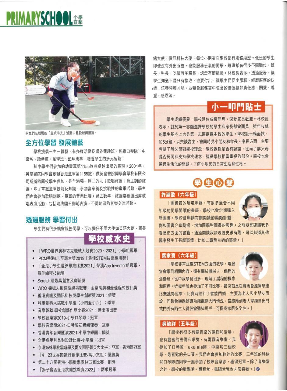 英皇書院同學會小學第二校 - 升中派位成績理想