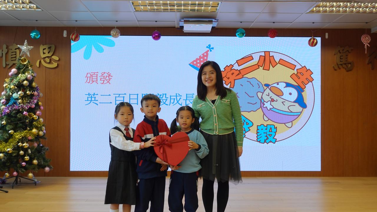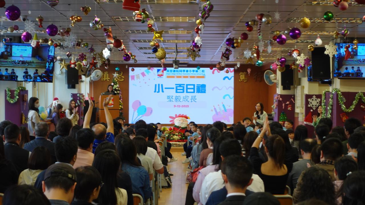 轉眼間,小一同學已入讀英小二校一百日!學校舉辦溫馨百日禮,與家長一同見證孩子的成長。 活動中回顧校園生活點滴、聆聽校長的勉勵及學校社工的分享,同學更獻上合唱表演。莊嚴宣誓後,同學獲頒發「堅毅成長章」及象徵圓滿的紅雞蛋。最後,同學親手送上感恩卡並擁抱家長,場面感人。 百日成長,感恩有您!願孩子繼續勇敢前行,快樂學習。