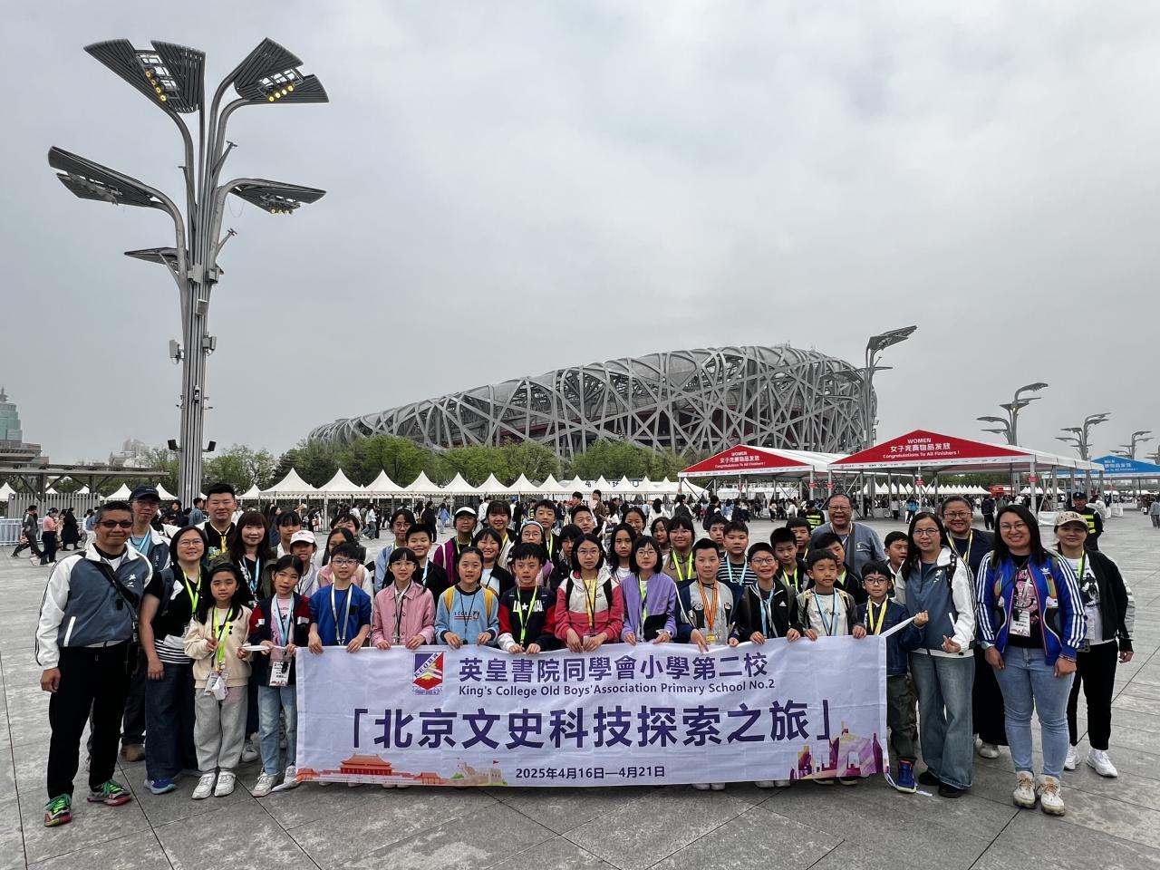 活動日期: 2025年4月16日至4月21日 地點:中國北京 為提高學生對祖國的認識和了解國情,以及讓學生認識祖國的歷史和經濟、科技的 發展,提高他們的國民身分認同,本校於2025年4月16日至4月21日舉辦 「北京文史科技探索之旅」活動 。參與是次活動包括團長林淑芳校長、5位教師、35位學生及4位家長義工 。 在六天的行程中,我校參與師生參觀了什刹海歷史文化保護區、北京現代汽車有限 公司(第二工廠)、中國航空博物館、周口店猿人遺址、故宮、首都博物館、前門大 街、天安門廣場(觀看降旗儀式)、中國共產黨歷史展覽館、居庸關長城、奧林匹 克公園及圓明園遺址等 。同時,亦跟姊妹學校——北京教育學院附屬豐台實驗學 校東校區進行交流,兩校師生互相交流辦學理念,並讓學生體驗射擊、非遺「宋錦 珍珠畫」DIY、籃球及跳繩等課程,加強兩校在教學、文化交流等方面的合作,共 同推動青少年全面發展 。 關於拜訪姊妹學校之媒體報導: 1.北京教育学院附属丰台实验学校 | 姊妹情深话成长 | 香港英皇书院同学会小学第二校到访我校深度交流 https://mp.weixin.qq.com/s/fmetDNwCYG_Fjc9HcLydXA 2.中國新聞網-香港师生参访北京周口店遗址博物馆 追寻远古文化足迹 https://m.chinanews.com/wap/detail/chs/zw/10402011.shtml活動影片