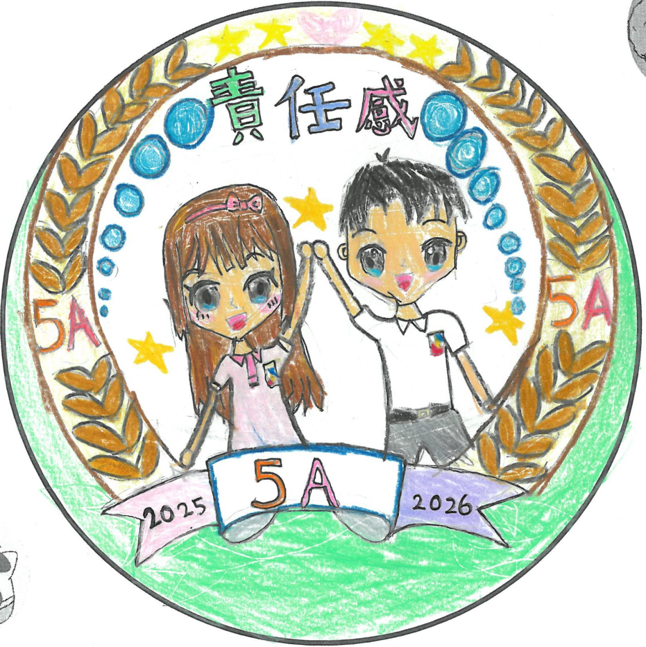 我設計的班徽是代表着5A班有責任感。在學校裏,我們不但學到知識,還學懂要時常懷着一顆責任心。