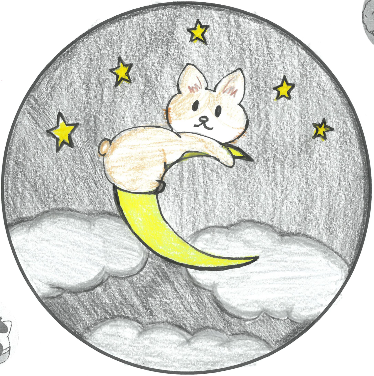 可愛的哥基犬趴在月亮上,象徵我們班充滿責任感,就如它守護月色般,用心守護班級,攜手奮進。