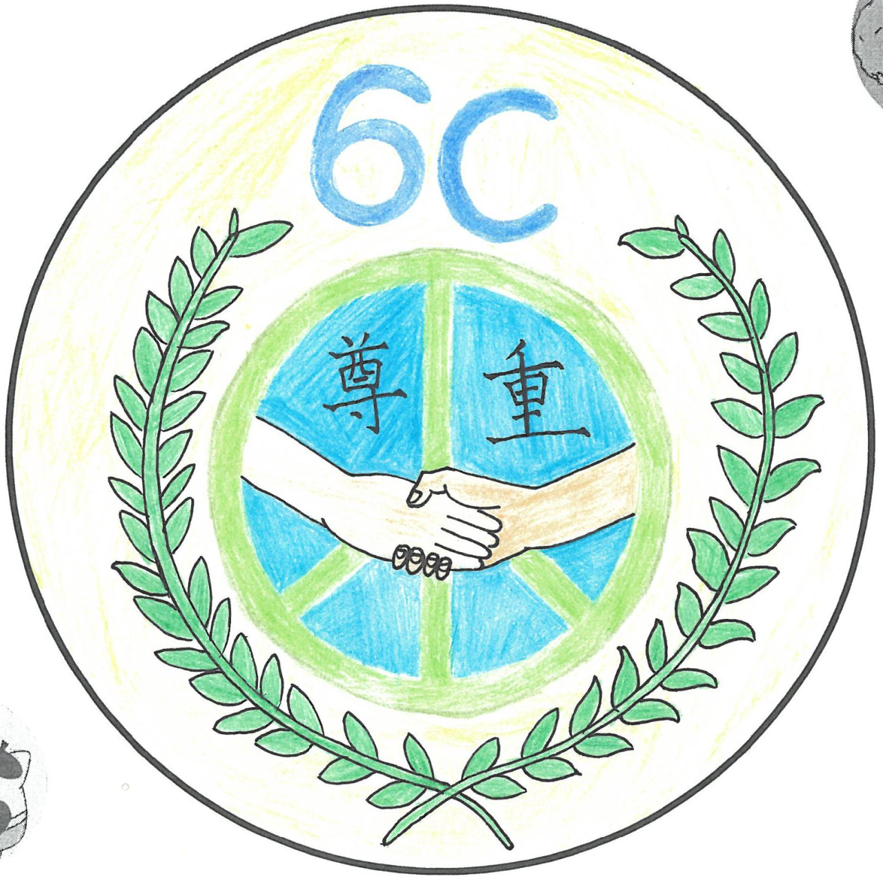 班徽中間握手圖案體現「尊重」主題,象徵同學、師生間互相尊重;橄欖枝寓意6C班在尊重的氛圍中和諧且充滿希望。