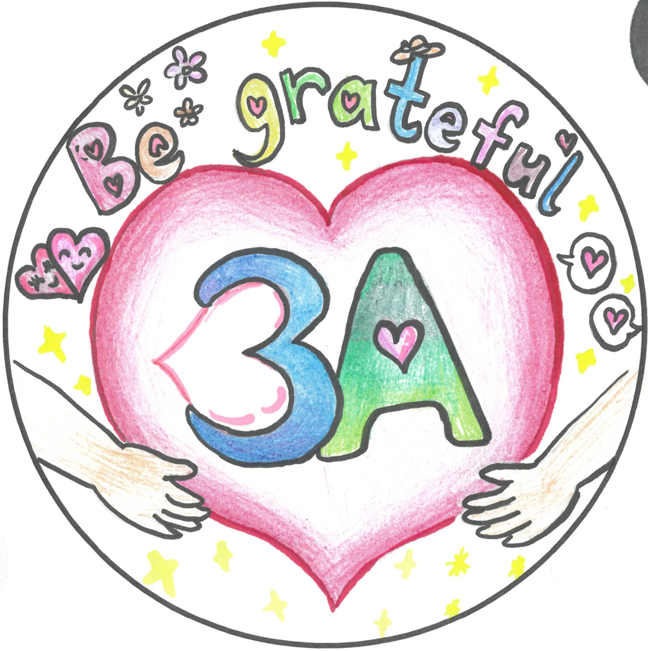 雙手拿着一顆心,心形裏有「6A」和英二學生互相鞠躬(象徵尊重)。心形上方兩側有橄欖枝(象徵包容),主色是藍色、紅色和金色(象徵信任、同理心和溫暖)。