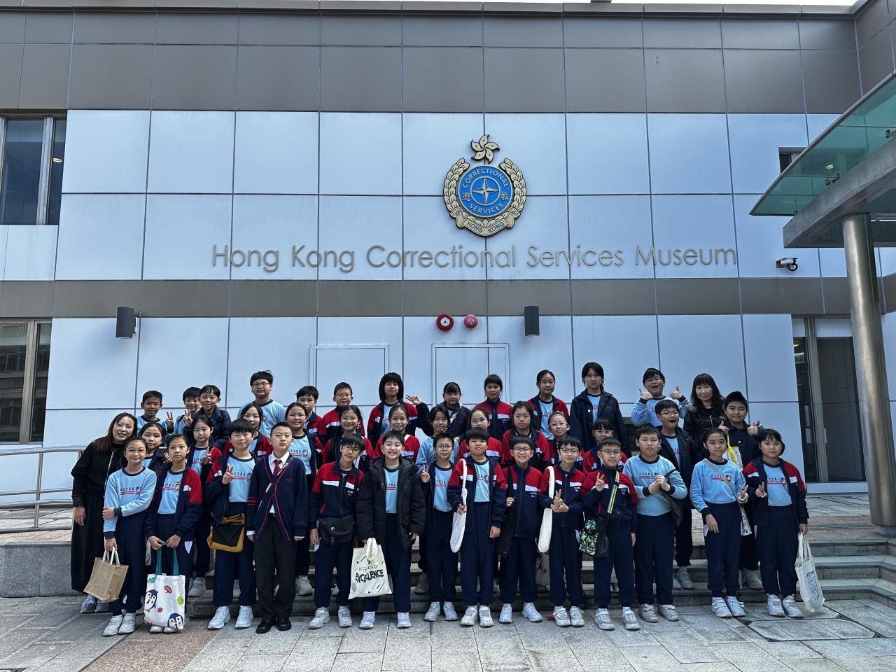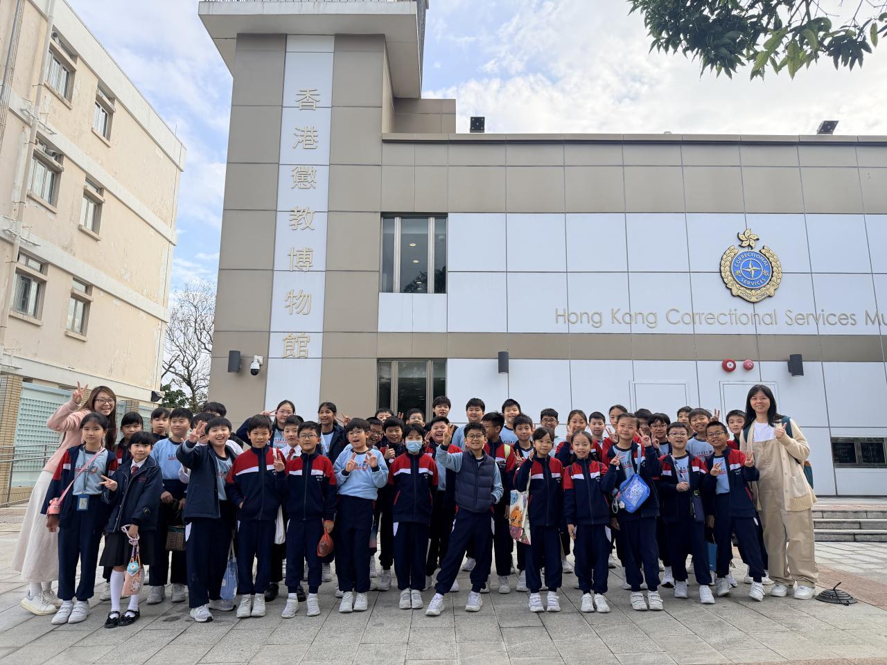 活動日期:04-02-2026 學校就校本價值觀I Care+ 計劃,以「守法」為主題,安排五年級學生參觀香港懲教博物館,作全方位學習活動。同學參觀了十個展覽室,從認識監獄的歷史及發展、刑罰及監禁、懲教職員的制服及裝備等資料中,深深體會守法的重要。