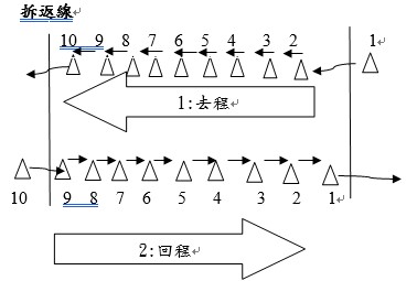 6. 第10組(站在終點的組別)完成踢毽後,該組二人需手拉手並拿著足毽,一同跑到拆返線。