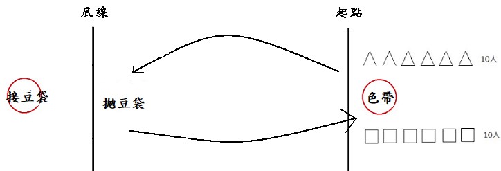 備註: 1個豆袋、1個大雪糕筒放在終點線位置開始。